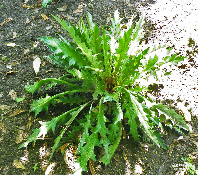 | LIŚCIE | Zielone liście są ułożone w rozetę, faliste, klapowane, ostre.