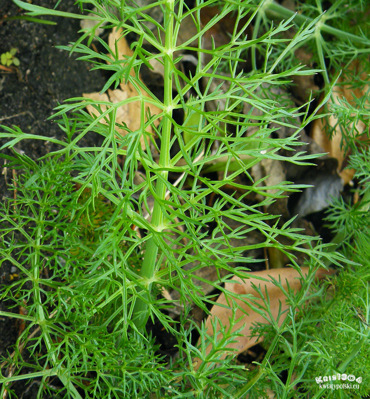| LIŚCIE | Trzykrotnie pierzaste, o odcinkach nitkowatych, ogonkowe o pochwiastej nasadzie.