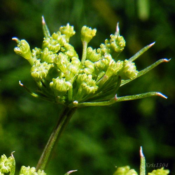 | OPIS | Kwiaty w baldachach złożonych, pokrywy lancetowate, wzniesione. Kwiaty pięciopłatkowe, bladożółte, lekko wycięte.