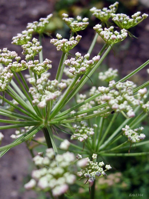 | LIŚCIE | 3-krotnie pierzaste, dolne długości do 40 cm, odcinki rozwarte pod kątem prostym lub rozwartym. Zapach liści bardzo aromatyczny.