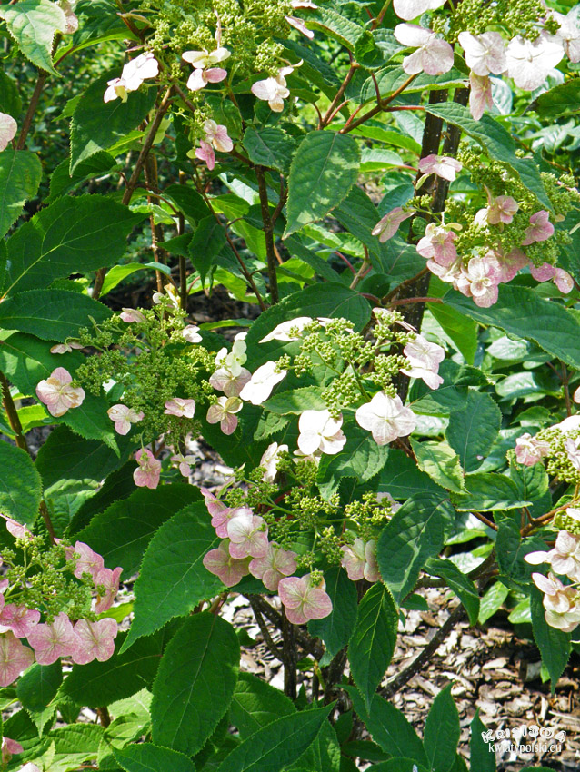 | OPIS | Kwiaty zebrane w białe, koronkowe kwiatostany. Płatki 4. Kwiatostany są szerokie, płaskie i luźne, o miodowym zapachu. Białe, płonne kwiaty pojawiają się w połowie lata i z upływem czasu przebarwiają się na delikatne odcienie różu. Mają około 20 cm średnicy.