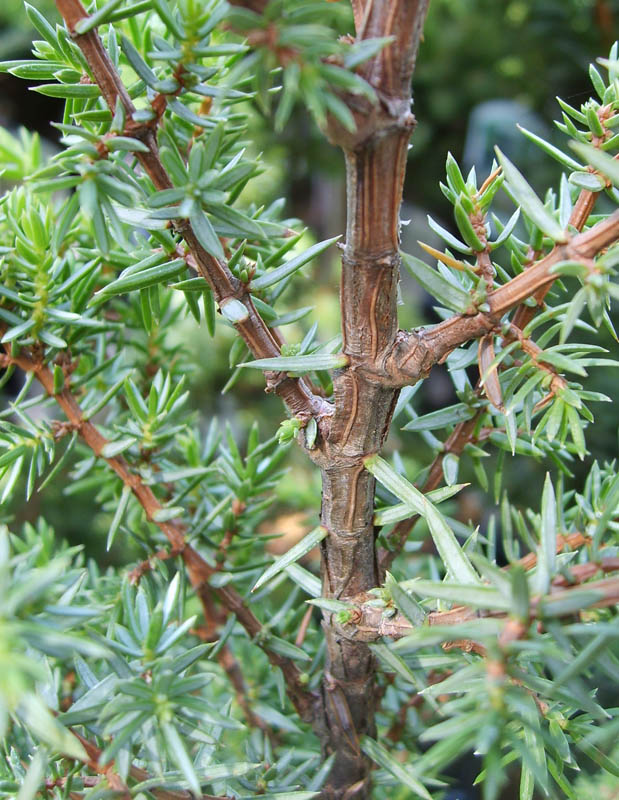| POKRÓJ | Zawsze zielony, powoli rosnący, prosty, od nasady rozgałęziony krzew o kolumnowej, występuje również jako małe drzewo o wielu pniach z wąsko piramidalną (tylko rzadko spłaszczoną) koroną, osiąga wysokość 0,5-6 m. Młode pędy - kanciaste z wąskimi podłużnymi listewkami.