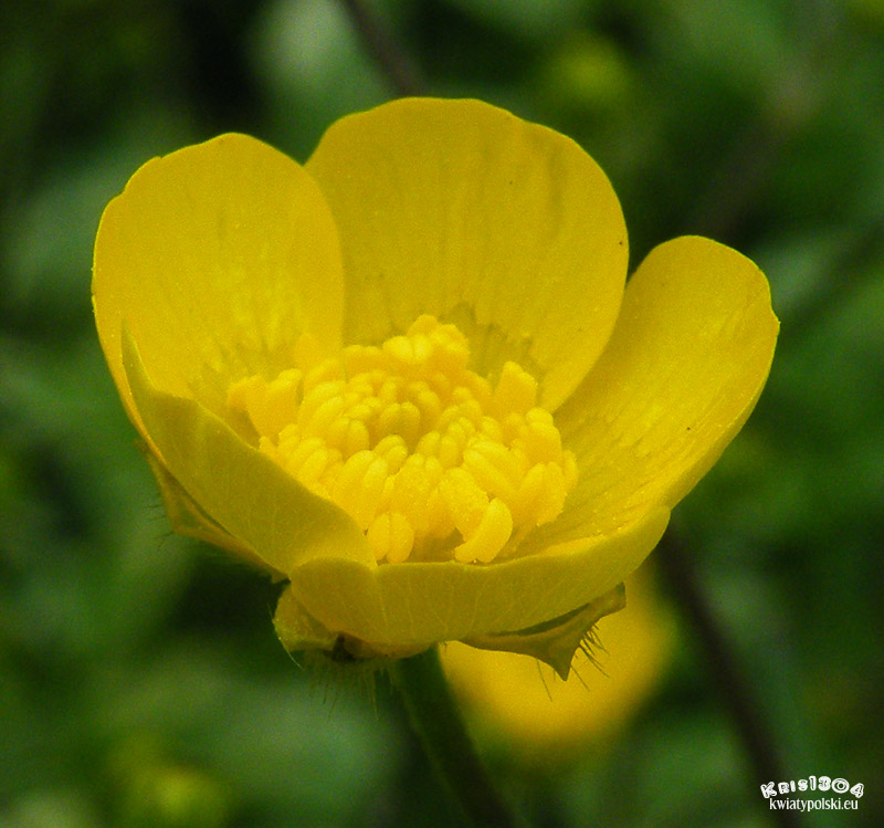 | OPIS | Kwiaty złotożółte o średnicy 1 - 2 cm. Dno kwiatowe nagie. 5 płatków korony, liczne pręciki i słupki.