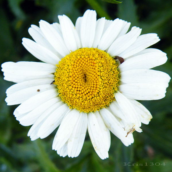 | OPIS | Kwiatostany typu koszyczek złożone są z białych kwiatów języczkowych i ciasno upakowanych we wnętrzu kwiatów rurkowych żółtej barwy.