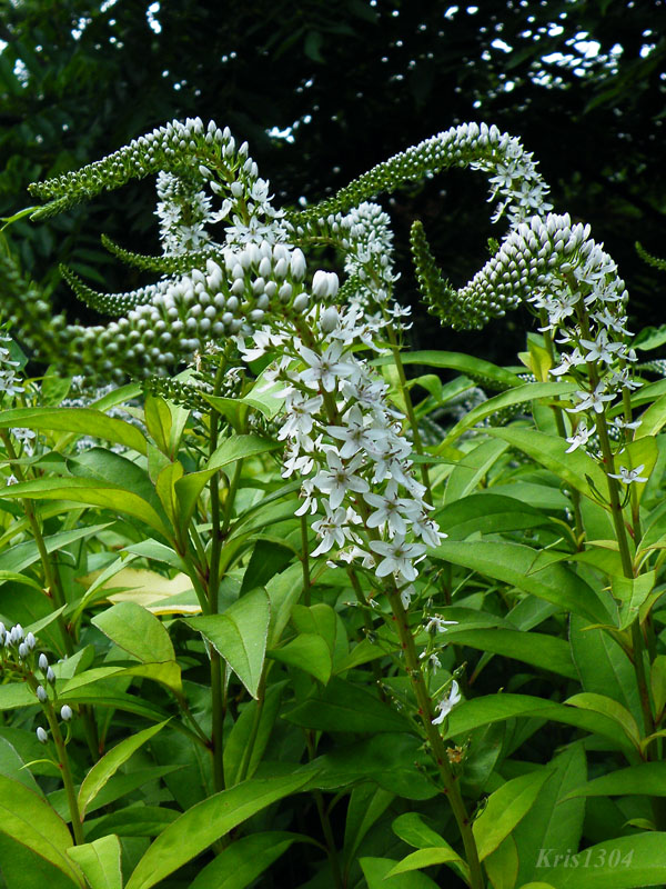 | OPIS | Kwiaty dość duże, zebrane w kwiatostan w postaci kłosa. Pięciopłatkowe, białe. Kłos charakterystycznie wygięty.