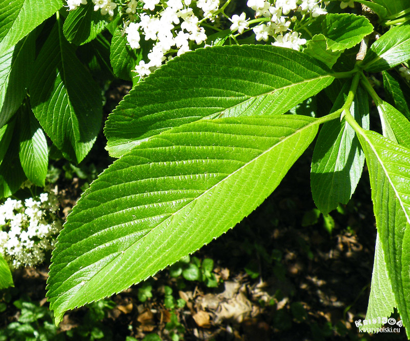 | LIŚCIE | Ogonkowe, eliptyczne o ząbkowanym brzegu, dość duże.