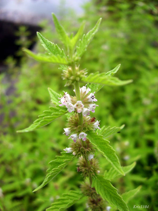 | OPIS | Kwiaty w gęstych nibyokółkach w katach górnych liści. Kielich o ząbkach krótszych od rurki. Kwiaty małe, wewnątrz czerwono nakrapiane.