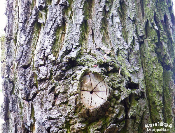 | KORA, PĘDY | Kora szarobrunatna, podłużnie siatkowato spękana (nieco głębiej niż u klonu zwyczajnego), często skorkowaciała. Młode pędy proste i cienkie, okrągłe w przekroju, początkowo żółtawobrązowe, posiadają duży, sześcioboczny rdzeń.