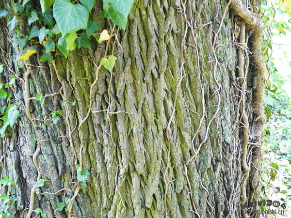 | KORA, PĘDY | Kora u młodych drzew jasnoszara i gładka, po pewnym czasie staje się ciemnoszara do czarniawej, pokryta ładnym rysunkiem gęstych i niezbyt głębokich, pionowych bruzd. Młode: oliwkowo-zielone do czerwonawych, pąki brunatnoczerwone, czasem do połowy oliwkowo-zielonkawe. Boczne pączki przylegające do gałązek, okryte 2-3 parami łusek. Blizny po naprzeciwległych liściach stykające się ze sobą.