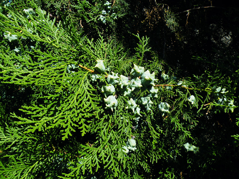 | KORA, PĘDY | Pędy skierowane ku górze, o wachlarzowatych rozgałęzieniach gęsto ustawionych w jednej płaszczyźnie. Kora czerwonobrązowa, łuszcząca się płatami.