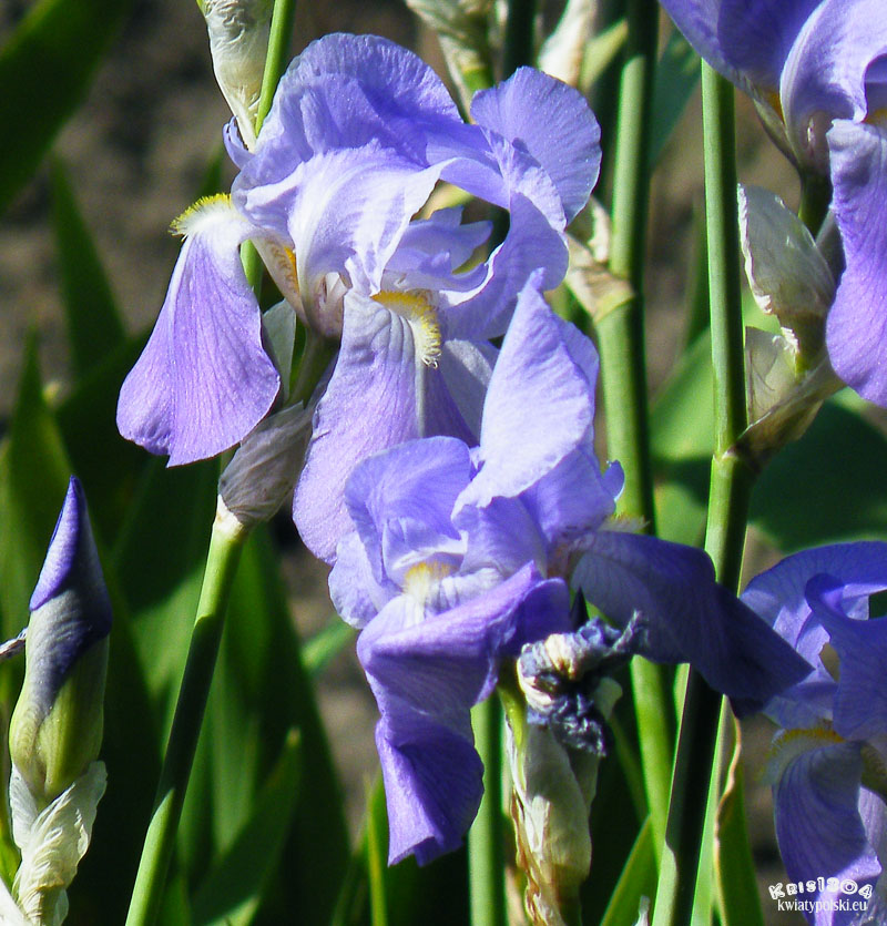 | OPIS | Kwiaty pachnące, bladofioletowe z żółtymi bródkami wyrastają z kątów pochwowych po 3-6 sztuk na rozgałęzionym pędzie.