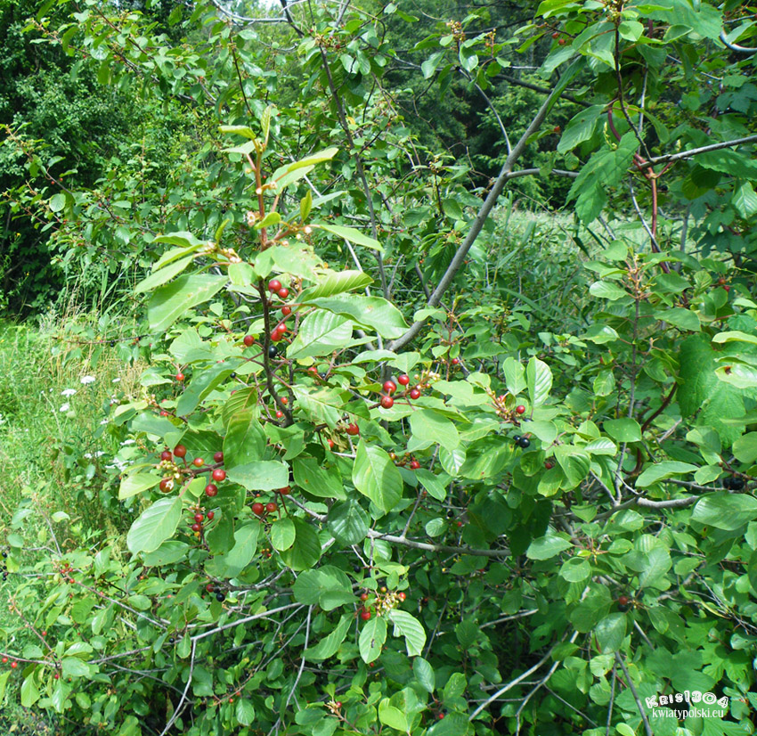 | OWOCE | Kulisty pestkowiec, wielkości grochu, zawierający 2-3 jajowate nasiona. Owoce są początkowo zielone, później czerwone i fioletowo-czarne, w końcu prawie czarne. Ponieważ nie dojrzewają równocześnie, w czasie owocowania na roślinie owoce są różnokolorowe.