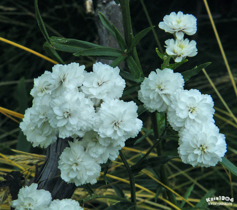 | OPIS | Liczne koszyczki,zebrane w gęste baldachogrona. Kwiaty pełne, białe.