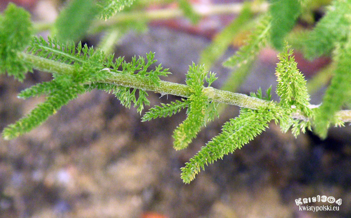 | LIŚCIE | Równowąskie, potrójnie pierzastosieczne, do 1 cm szerokości. Łatki ostatniego rzędu włosowate. Gęsto owłosione.