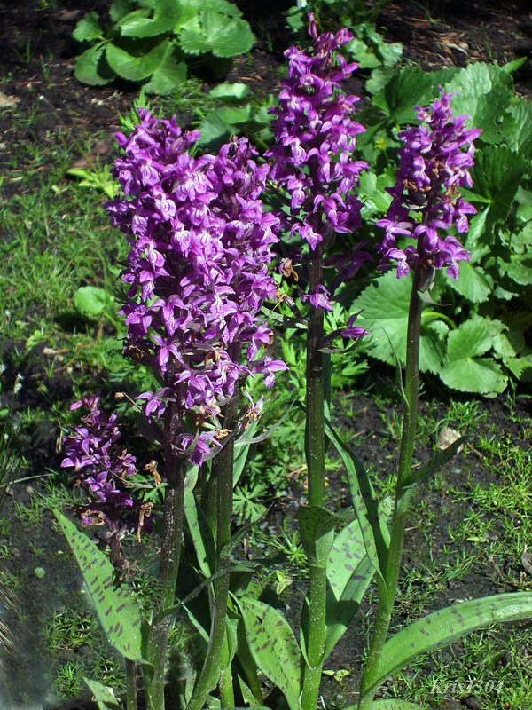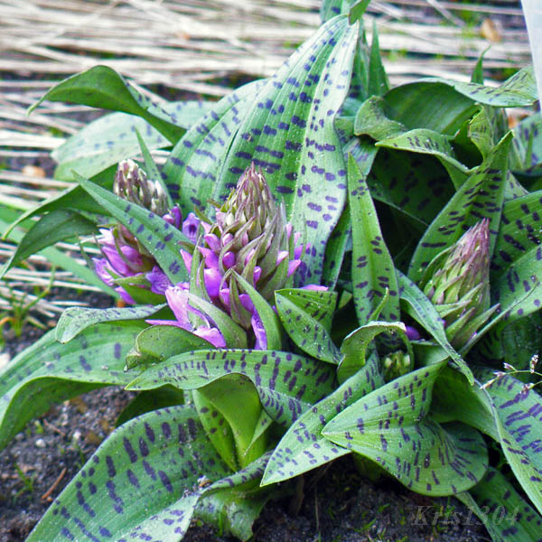 | LIŚCIE | Jajowo-lancetowate z krótką pochwą, na wierzchu liści często występują nieregularne, ciemne plamki. Zwykle od 4-8 liści na łodydze, najwyższe z nich sięgają do kwiatostanu.