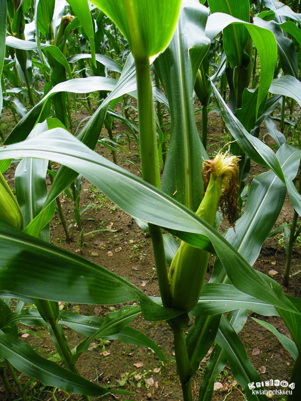 | OPIS | Roślina jednopienna i wiatropylna (anemogamia). Kwiatostany kwiatów męskich w postaci wiechy złożonej o długości 10 do 40 cm są osadzone na wierzchołkach źdźbeł. Wiecha składa się z licznych, dwukwiatowych kłosków osadzony parami, spiralnie, na osi kwiatostanowej. W kwiecie trzy pręciki z pylnikami zawierającymi do 2500 ziaren pyłku. Kwiatostany żeńskie osadzone na skróconych pędach bocznych przekształconych w osadki tworzące kolby stojące pojedynczo w pachwinach liści, okryte pochwami liściowymi. Kłoski kolby są dwukwiatowe, z których jeden ma normalnie rozwinięty słupek z bardzo długim znamieniem (nawet do 70 cm), drugi jest szczątkowy, niezdolny do zapłodnienia i tworzenia nasion.