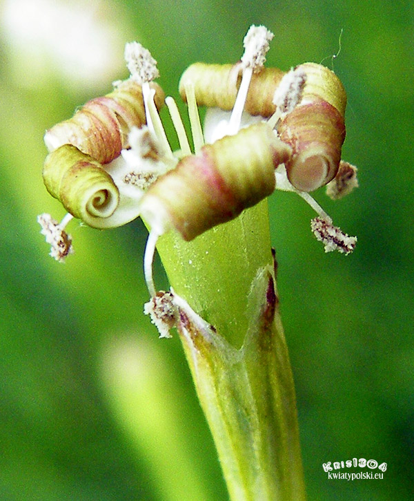 | OPIS | Od 1 do kwiatów w wierzchotce na szczycie łodygi. Płatki białe, wycięte do 1/4 długości. Precików 10.