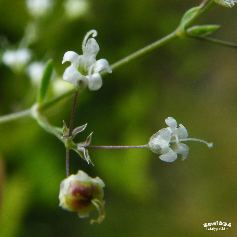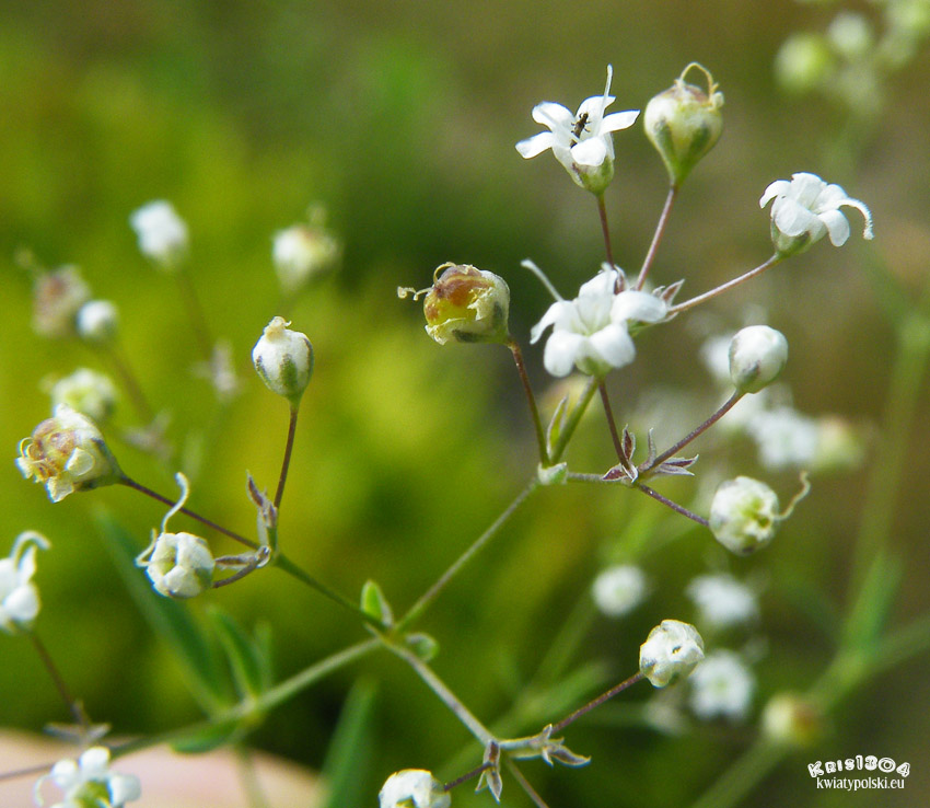 | OPIS | Kwiaty białe, lub różowawe, drobne, zebrane w szeroką wiechę o bardzo cienkich gałązkach. Kwiaty promieniste, 5-krotne. Działki kielicha zrośnięte, płatki korony równowąskoklinowate, na szczycie zaokrąglone, 1 słupek z dwoma szyjkami, 10 pręcików dłuższych od płatków.