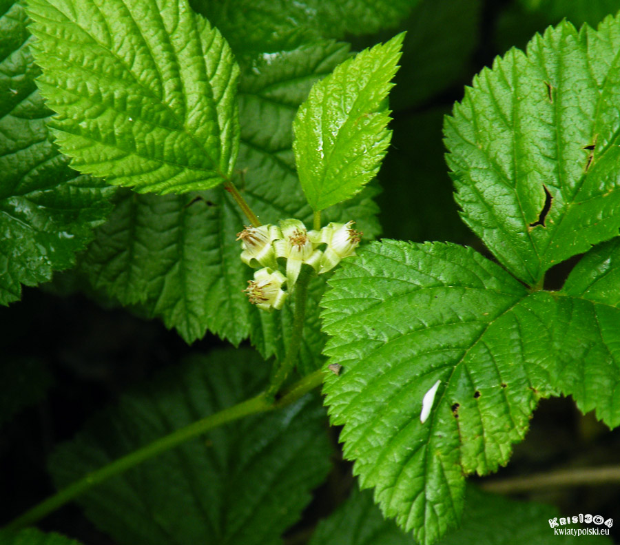 | LIŚCIE | Długoogonkowe, trójdzielne z odwrotnie jajowatymi listkami, na brzegu grubo piłkowane, zielone. Przylistki jajowato-eliptyczne.