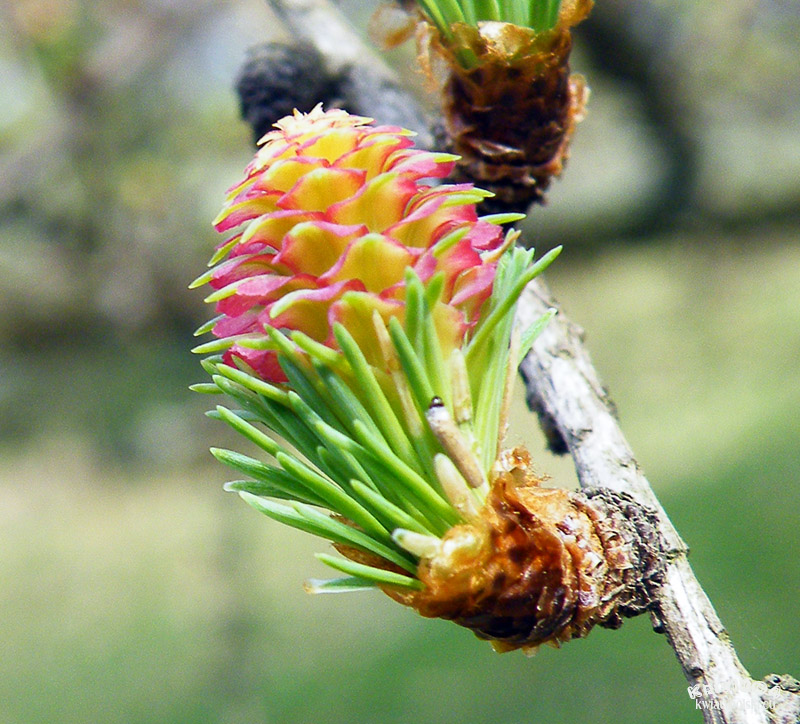 | OPIS | Kwiaty rozdzielnopłciowe, rozmieszczone jednopiennie, wiatropylne, zebrane na krótkopędach w szyszeczki. Męskie szyszeczki umieszczone pod spodem gałązek, jajowate, bardzo małe, długości 0.5-1cm, żółtawe. Żeńskie szyszeczki stojące, jajowate, długości 1-3cm, początkowo jaskrawo różowoczerwone do bordowych (rzadziej bladoróżowe), potem zieleniejące.