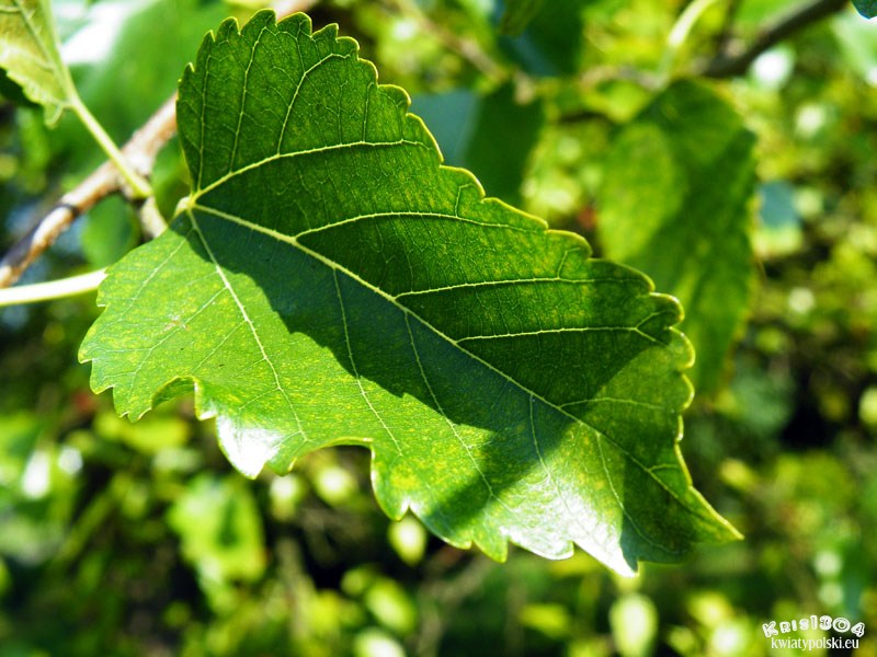 | LIŚCIE | Blaszkowate, pojedyncze. Blaszka o bardzo zmiennym kształcie, w ogólnym zarysie jajowata, bezklapowa lub z 3-5 niesymetrycznymi, często bardzo głębokimi klapami, długości 6-18 cm. Bezklapowe liście przypominają lekko wydłużone liście lipy, posiadają sercowatą i często niesymetryczną nasadę oraz zaostrzony wierzchołek, na brzegu są grubo i dość głęboko nieregularnie piłkowane, z góry ciemnozielone, bardzo mocno błyszczące, nagie, od spodu matowe, z kępkami białych włosków tylko na głównych nerwach. Ustawienie skrętoległe na 1.5-2 cm ogonkach. Ogonki owłosione, z góry rynienkowate, wydzielają sok mleczny.
