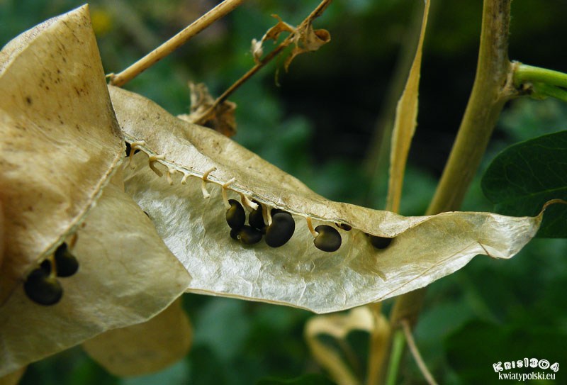| OWOCE | Duży, błoniasty i rozdęty strąk o długości 6-8 cm.